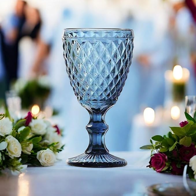 Vintage 6er-Set Farbige Weingläser mit Netz Muster - Blau