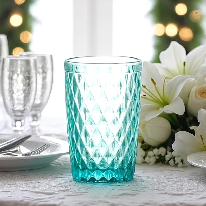 Vintage 6er-Set Farbige Trinkgläser mit Netz Muster - Türkis