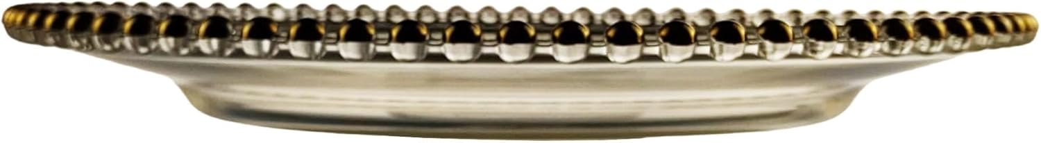 - Dieser Glasteller sticht nicht nur durch seine robuste und erstklassige Verarbeitung hervor, sondern auch durch einen eleganten Gold- oder Silberrand, der ihn zu einem wahren Eyecatcher macht.